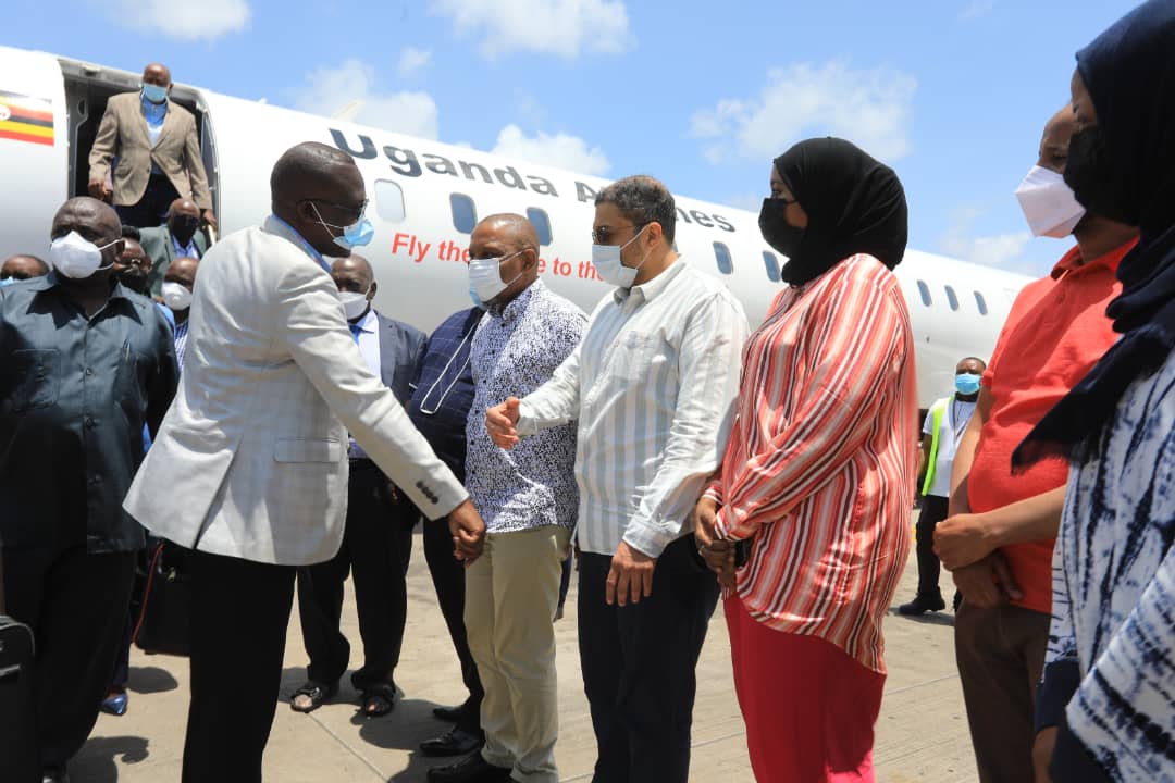 A delegation of ministers and government officials led by Hon. Francis Mwebesa, Minister of Trade, Industry and Cooperatives of the Republic of Uganda, this afternoon arrived at the Moi International Airport to participate in the Kenya – Uganda Agribusiness Symposium and Exhibition scheduled to take place 8th – 9th September 2021 in Mombasa – Kenya